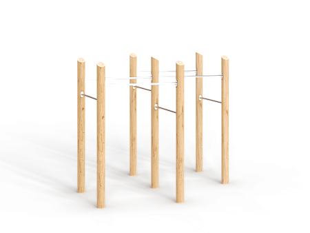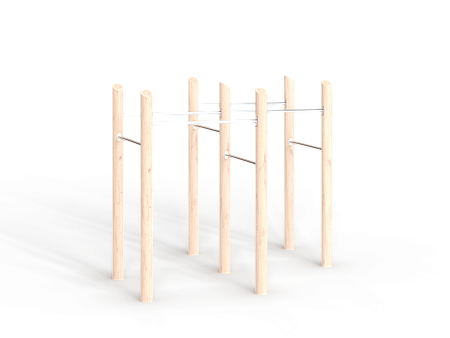 Первый - деревянные столбы и брёвна выполнены из лиственницы, имеют естественную природную форму, тщательно отшлифованы и обладают высочайшей прочностью.