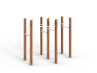 Первый - деревянные столбы и брёвна выполнены из лиственницы, имеют естественную природную форму, тщательно отшлифованы и обладают высочайшей прочностью.