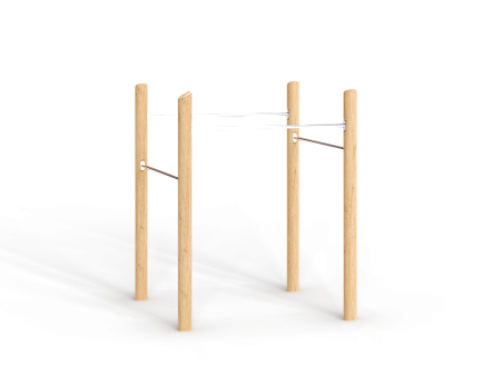 Первый - деревянные столбы и брёвна выполнены из лиственницы, имеют естественную природную форму, тщательно отшлифованы и обладают высочайшей прочностью.