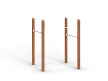 Второй — деревянные столбы и брёвна выполнены из клееной сосновой древесины с последующим оцилинриванием, имеет ровную цилиндрическую поверхность.