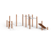 Первый - деревянные столбы и брёвна выполнены из лиственницы, имеют естественную природную форму, тщательно отшлифованы и обладают высочайшей прочностью.
