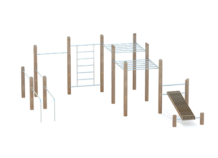 Первый - деревянные столбы и брёвна выполнены из лиственницы, имеют естественную природную форму, тщательно отшлифованы и обладают высочайшей прочностью.