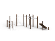 Первый - деревянные столбы и брёвна выполнены из лиственницы, имеют естественную природную форму, тщательно отшлифованы и обладают высочайшей прочностью.