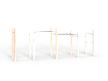 Второй — деревянные столбы и брёвна выполнены из клееной сосновой древесины с последующим оцилинриванием, имеет ровную цилиндрическую поверхность.