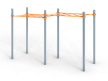 Воркаут состоит из шести несущих столбов и двух рукоходов с зажимными хомутами.