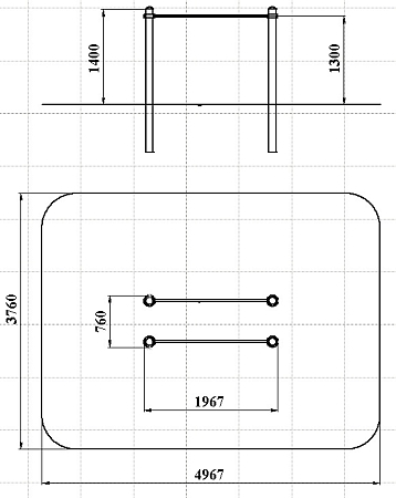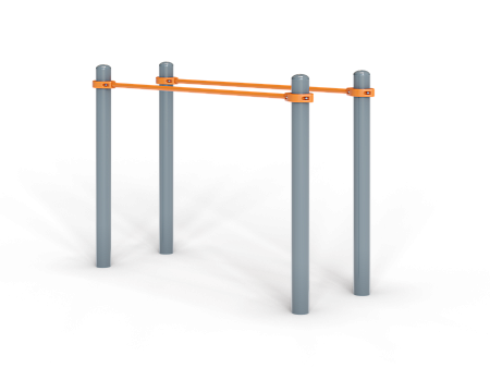 Воркаут состоит из четырех несущих столбов и двух перекладин с зажимными хомутами.