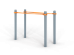 Воркаут состоит из четырех несущих столбов и двух перекладин с зажимными хомутами.