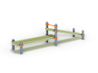 Воркаут состоит из шести несущих столбов, пяти перекладин и двух скамей из бруса (одна наклонная) с зажимными хомутами.