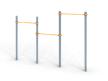 Воркаут состоит из четырех несущих столбов и трёх перекладин с зажимными хомутами.