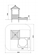 Домик состоит из башни с четырёхскатной крышей, двух ограждений из бруса и песочницы из бруса с трёмя фанерными угловыми накладками.