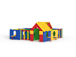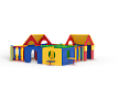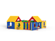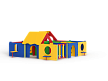 Лабиринт состоит из девяти секций (две из них с крышами) разделенных фанерными ограждениями с круглыми и арочными лазама. Со стороны улицы крепятся столики и ступеньки.