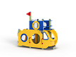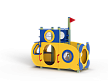 Домик скомпонован в форме подводной лодки, состоит из двух спаренных башен и одной радиусной полубашни, являющейся передом подводной лодки. Центральная башня - двухъярусная, имитирует рубку подводной лодки. Ограждениями первого яруса являются фанерные листы с вырезами-лазами. На задней части первого яруса два ограждения с пластиковыми иллюминаторами. Переход с первого яруса на второй обеспечен лестницей металлической, крепящейся снизу к полу первого яруса, сверху крепится к столбам башни. Второй ярус огражден фанерными ограждениями с пластиковыми иллюминаторами и дуговыми металлическими перекладинами.