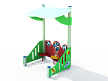 Беседка с художественным оформлением в футбольной тематике..Беседка состоит из двух ограждений, стенки с тремя скамейками и крыши.