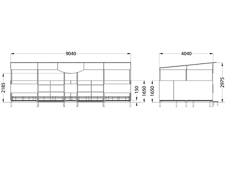 Беседка 9х4 метра состоит из оцинкованной крыши с фанерными фасадами, фанерными ограждениями, сборного металлокаркаса, ступени, закладных элементов, площадок и скамеек.