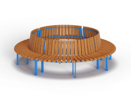 Лавочка - разборная конструкция в форме круга, состоит из металлических ножек, металлического каркаса сидения, металлического каркаса спинки и деревянного бруса. Ножки, сидения и спинки крепятся друг другу через болтовые соединения.