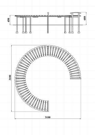 Лавочка - разборная конструкция в форме трех четверти круга, состоит из металлических ножек, металлического каркаса сидения и деревянного бруса. Ножки и сидения крепятся друг другу через болтовые соединения.