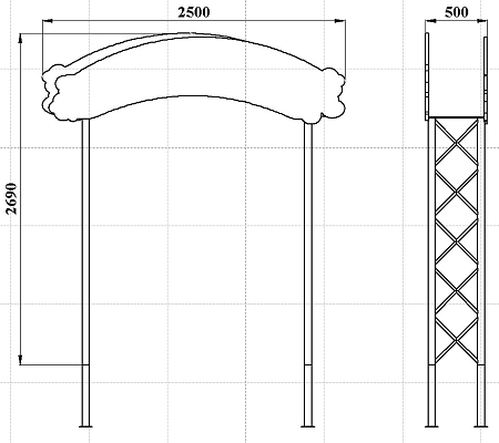 Арка выполнена в виде сборного металлокаркаса с фанерными накладками с художественным оформлением.