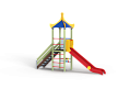 Детский игровой комплекс состоит из одной башни с крышей, лестницей, горкой, перекладинами, ограждением и детскими счётами.