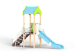 Детский игровой комплекс состоит из одной башни с крышей, лестницей, горкой, лианой и спиралью наклонной.