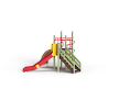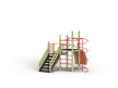Детский игровой комплекс состоит из двух разновысоких башен. На одной из башен установлена лестница, горка, металлическое ограждение, на другой башне установлены трап барабан с перекладиной и канатом, шест спираль, две шведские стенки и ручки вспомогательные.