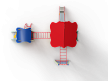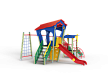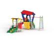 Детский игровой комплекс состоит из двух башен. На одной из башен установлена лестница, горка, альпинистская стенка, ограждение, ручки вспомогательные и внешняя сетка полипропиленовая, соединенная с башней рукоходом. На другой башне установлены трап, лиана, шведская стенка, ручки вспомогательные и ограждение. Башни соединены между собой металлическим рукоходом.
