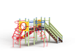 Детский игровой комплекс состоит из двух башен. На первой башне установлена лестница, горка и ограждение из бруса с перекладинами. Первая башня соединяется со второй башней подвесным мостом. На второй башне установлено ограждение с круглым вырезом, спираль наклонная, лиана и шест-спираль.