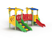 Детский игровой комплекс состоит из двух башен с фасонными крышами, соединенных радиусным мостом с фанерными перилами. На первой башне установлены лестница, горка и ограждение. На второй башне установлены трап и ограждения.
