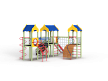 Детский игровой комплекс состоит из трех башен. На первой башне установлены альпинистская стенка с перекладиной и канатом, шест прямой, ограждение из бруса с перекладинами и шведская стенка. На второй башне установлена лестница, горка и два ограждения из бруса с перекладинами . Первая и вторая башня соединяются полипропиленовой сеткой. На третьей башне установлено ограждение из бруса с перекладинами, шест спираль и спираль наклонная. Вторая и третья башни соединены подвесным мостом.