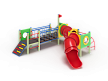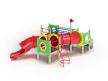 Детский игровой комплекс состоит из трех башен. На первой башне установлены трап, ограждение с иллюминатором, ручки вспомогательные, перекладины. На второй башне установлены лестница, ручки вспомогательные, ограждение с иллюминатором и два декоративных фанерных флажка. На третьей башне установлены лиана наклонная, горка-труба пластиковая, ограждение с иллюминатором и перекладина. Первая и вторая башня соединены подвесным качающимся мостом, вторая и третья башни соединены пластиковой изогнутой трубой переходом.