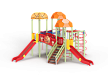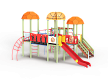 Детский игровой комплекс состоит из трех башен с крышами, имеет художественное оформление в стиле баскетбола. На первой башне установлены лестница, горка, вынесенная шведская стенка с рукоходом, перекладиной с гимнастическими кольцами и шестом спиралью. На второй башне установлена горка и фанерное ограждение. На третьей башне установлена лиана, ограждение фанерное и шведская стенка. Первая и вторая башни соединяются разновысоким мостом с фанерными перилами. Вторая и третья башни соединены подвесным качающимся мостом с фанерным ограждением.