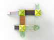Детский игровой комплекс состоит из трех башен с крышами, имеет художественное оформление в стиле граффити. На первой башне установлена лестница, спираль наклонная, ручки вспомогательные, ограждение с круглым лазом, вынесенная шведская стенка с рукоходом, перекладиной с гимнастическими кольцами и шестом спиралью. На второй башне установлена горка и фанерное ограждение. На третьей башне установлена лиана, ручки вспомогательные, ограждение фанерное с декоративными элементам и шведская стенка. Первая и вторая башни соединяются разновысоким мостом с фанерными перилами. Вторая и третья башни соединены подвесным качающимся мостом с фанерным ограждением.