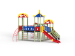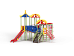 Детский игровой комплекс состоит из трех башен с крышами. На первой башне установлена лестница, спираль наклонная, ручки вспомогательные, ограждение с круглым лазом, вынесенная шведская стенка с рукоходом, перекладиной с гимнастическими кольцами и шестом спиралью. На второй башне установлена горка и фанерное ограждение с декоративными элементами. На третьей башне установлена лиана, ручки вспомогательные, ограждение фанерное с декоративными элементам и шведская стенка. Первая и вторая башни соединяются разновысоким мостом с фанерными перилами. Вторая и третья башни соединены подвесным качающимся мостом с фанерным ограждением и декоративными элементами.
