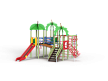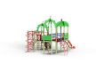Детский игровой комплекс состоит из трех башен с крышами. На первой башне установлена лестница, спираль наклонная, ручки вспомогательные, ограждение с круглым лазом, вынесенная шведская стенка с рукоходом, перекладиной с гимнастическими кольцами и шестом спиралью. На второй башне установлена горка и фанерное ограждение. На третьей башне установлена лиана, ручки вспомогательные, ограждение фанерное и шведская стенка. Первая и вторая башни соединяются разновысоким мостом с металлическими перилами. Вторая и третья башни соединены подвесным качающимся мостом.