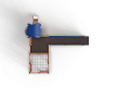 Детский игровой комплекс предназначен для детей с ограниченными физическими возможностями, он состоит из двух сдвоенных открытых башен и башни с фасонной крышей. На башне установлена горка, балкон с фанерным штурвалом, металлическое ограждение из перекладин. По периметру комплекса установлены ограждения из металлических перекладин и одного фанерного ограждения с декоративным элементом. Вход на площадку осуществлен в виде двойного наклонного трапа с металлическими перилами. Сбоку от площадки расположен спортивный комплекс, состоящий из столбов, шведских стенок и горизонтальной полипропиленовой сетки. Ограждением комплекса также служит брус расположенный по периметру комплекса над ламинированными полами.