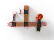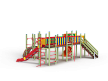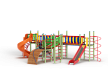 Детский игровой комплекс состоит из четырёх башен. На первой башне установлена лестница, горка винтовая пластиковая, ограждение с круглым лазом, спираль. На второй башне установлены шведская стенка, шест, ручки вспомогательные и перекладина. На третьей башне установлены горка, шест спираль, две шведские стенки, ручки вспомогательные, перекладины. На четвертой башне уста-новлены трап-барабан с перекладиной и канатом, две шведские стенки, перекладины и вспомогательные ручки. Четвертая башня имеет продолжение в виде вынесенной шведской стенки и соединяется с ней перекладинами усиленными. Первая и вторая башни соединены прямым мостом с фанерными перилами из балясин, вторая и третья прямым мостом с фанерными перилами из балясин, вторая и четвертая разновысоким мостом с фанерными перилами..
