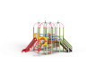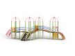 Детский игровой комплекс состоит из четырех башен с металлическими крышами. На первой башне установлена спираль, ограждение фанерное с круглым лазом, шведская стенка и ограждение из бруса с перекладинами. На второй башне установлены ограждение из бруса с перекладинами, лестница. На третьей башне установлена горка, ограждение из бруса с перекладинами. На четвертой башне установлены ограждение из бруса с перекладинами, альпинистская стенка, перекладины с канатом, трап барабан, вспомогательные ручки. Первая и вторая башни соединены радиусным мостом с металлическими перилами, вторая с третьей, и третья с четвертой разновысокими мостами с металлическими перилами.