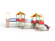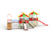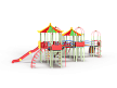 Детский игровой комплекс состоит из пяти башен. На двух башнях установлена крыша в форме восьмигранной пагоды, на трёх башнях установлена крыша металлическая со столбом. На восьмигранных башнях установлены горки, шест с колесами пластиковыми, ручки вспо-могательные, лестница и фанерные ограждения. На башнях с металлической крышей установлены шест, лиана, ручки вспомогательные, трап барабан с перекладиной и канатом, шест спираль, перекладины и фанерные ограждения. Башни соединены четырьмя мостами: наклонным, подвесным и двумя радиусными мостами с металическими перилами.