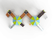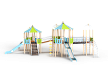 Детский игровой комплекс состоит из пяти башен. На двух башнях установлена крыша в форме восьмигранной пагоды, на трёх башнях установлена крыша металлическая со столбом. На восьмигранных башнях установлены горки, шест с колесами пластиковыми, ручки вспо-могательные, лестница и фанерные ограждения. На башнях с металлической крышей установлены шест, лиана, ручки вспомогательные, трап барабан с перекладиной и канатом, шест спираль, перекладины и фанерные ограждения. Башни соединены четырьмя мостами: наклонным, подвесным и двумя радиусными мостами с металическими перилами.