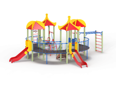 Детский игровой комплекс состоит из четырёх последовательно соединённых по окружности башен с крышами. На первой башне установлены шведские стенки, ручки вспомогательные, перекладина с канатами и внешняя шведская стенка с усиленным рукоходом. На второй башне установлены лестница и горка. На третьей башне установлены горка и фанерное ограждение. На четвертой башне установлены лиана, перекладина с канатом, вспомогательные ручки и гимнастический комплекс с кронштейнами с канатом и кольцами гимнастическими. Первая, вторая, третья и четвертая башни соединены дугообразными мостами.