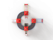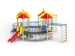 Детский игровой комплекс состоит из четырёх последовательно соединённых по окружности башен с крышами. На первой башне установлены шведские стенки, ручки вспомогательные, перекладина с канатами и внешняя шведская стенка с усиленным рукоходом. На второй башне установлены лестница и горка. На третьей башне установлены горка и фанерное ограждение. На четвертой башне установлены лиана, перекладина с канатом, вспомогательные ручки и гимнастический комплекс с кронштейнами с канатом и кольцами гимнастическими. Первая, вторая, третья и четвертая башни соединены дугообразными мостами.