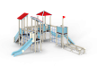 Детский игровой комплекс состоит из четырёх башен. На первой башне установлены крыша наклонная, ограждение из бруса, шест, перекладина и горка. На второй башне установлены крыша наклонная, ограждение из бруса, перекладина и лестница. На третьей башне установлены крыша четырехскатная, горка, перекладина и четыре ограждения из бруса. На четвёртой башне установлены три ограждения из бруса, пять перекладин, декоративные флажки и трап из бруса с альпинистскими камнями  Первая и вторая башни соединены полипропиленовым переходом, вторая и третья башни соединены мостом подвесным из деревянного бруса и полипропиленового каната, третья и четвёртая башни соединены сеткой полипропиленовой.