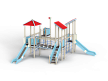 Детский игровой комплекс состоит из четырёх башен. На первой башне установлены крыша наклонная, ограждение из бруса, шест, перекладина и горка. На второй башне установлены крыша наклонная, ограждение из бруса, перекладина и лестница. На третьей башне установлены крыша четырехскатная, горка, перекладина и четыре ограждения из бруса. На четвёртой башне установлены три ограждения из бруса, пять перекладин, декоративные флажки и трап из бруса с альпинистскими камнями Первая и вторая башни соединены полипропиленовым переходом, вторая и третья башни соединены мостом подвесным из деревянного бруса и полипропиленового каната, третья и четвёртая башни соединены сеткой полипропиленовой.