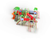 Детский игровой комплекс состоит из семи башен. На первой башне установлены шест спираль, ручки вспомогательные, горка, ограждение фанерное в форме динозавра и крыша. На второй башне установлена лиана наклонная. На третьей башне горка, фанерное ограждение в форме динозавра, перекладина и ручки вспомогательные. Третья башня имеет продолжение в виде гимнастического комплекса состоящего из рукохода, шеста, декоративных накладок и шведской стенки. На четвертой башне установлена пластиковая горка-труба. На пятой башне установлено фанерное ограждение в форме динозавра и лестница. На шестой башне установлены фанерное ограждение в форме динозавра, шведская стенка и ручки вспомогательные. Шестая башня имеет продолжение в виде гимнастического комплекса состоящего из: сетки полипропиленовой, декором в виде динозавриков, перекладин с полипропиленово лестницей, канатами и кольцами гимнастическими, шведских стенок. На седьмой (двухуровневой) башне установлена крыша, фанерные ограждения в форме динозавра, горка пластиковая винтовая, лестница. Первая и вторая башня соединены подвесным качающимся мостом, вторая и третья подвесным качающимся мостом, четвертая и вторая, четвертая и пятая наклонным мостом с металлическими перилами на которые установлены накладки с ручной художественной росписью в виде динозавра, пятая и шестая пластиковой трубой переходом, четвертая и седьмая пластиковой трубой переходом.