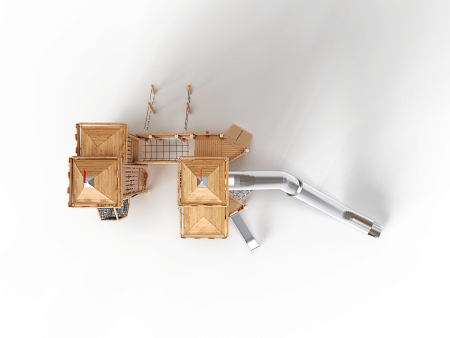 Сетки и канаты изготовлены из многожильного армированного износостойкого каната. Металлические элементы комплекса выполнены из нержавеющей стали.