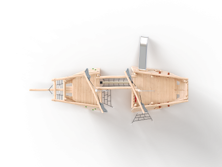 Сетки и канаты изготовлены из многожильного армированного износостойкого каната. Металлические элементы комплекса выполнены из нержавеющей стали.