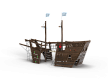 Комплекс выполнен в виде комбинации деревянных столбов и сеток, в совокупности образующих остов корабля с двумя мачтами и двумя башнями с площадками. Башни соединены подвесным бревном.. Обшивка корабля выполнена из деревянного бруса. На задней части корабля установлены пушки, сетка и горка из нержавеющей стали. На носовой части корабля установлены ручки, лестницы канатные и канатный обвес.