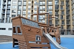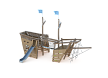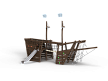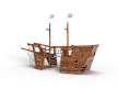 Комплекс выполнен в виде комбинации деревянных столбов и сеток, в совокупности образующих остов корабля с двумя мачтами и двумя башнями с площадками. Башни соединены подвесным бревном.. Обшивка корабля выполнена из деревянного бруса. На задней части корабля установлены пушки, сетка и горка из нержавеющей стали. На носовой части корабля установлены ручки, лестницы канатные и канатный обвес.