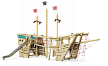 Комплекс выполнен в виде комбинации деревянных столбов и сеток, в совокупности образующих остов корабля с тремя мачтами и двумя башнями с площадками. Башни соединены подвесным бревном. Обшивка коробля выполнена из деревянного бруса. На задней части корабля установлены пушки, сетка и горка из нержавеющей стали. На носовой части корабля установлены ручки, лестницы канатные, сетки и канатный обвес. В центре корабля расположен столик с "раковиной" под песок и подвижное приспособление для транспортировки песка с области грунта на столик.