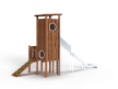 Первый - деревянные столбы и брёвна выполнены из лиственницы, имеют естественную природную форму, тщательно отшлифованы и обладают высочайшей прочностью.