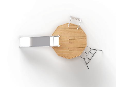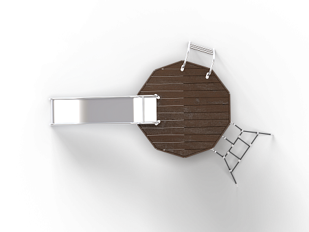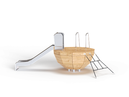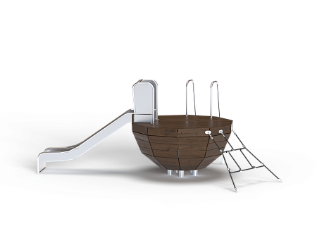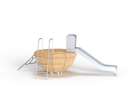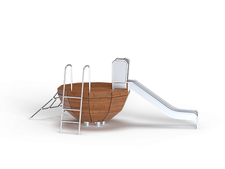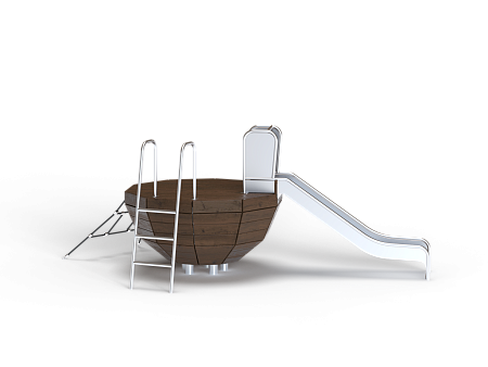 Комплкс выполнен из металлического каркаса покрытого в два слоя порошковой полимерной краской, бруса выполненого из лиственницы, тщательно отшлифованного и обладающего высочайшей прочностью. Деревянные элементы покрыты специальной пропиткой, содержащую антисептики и обеспечивающую ультрафиолетовую защиту от солнечного воздействия. Горки и лестницы выполнены из нержавеющей стали. Сетки и канаты изготовлены из многожильного армированного износостойкого каната.
